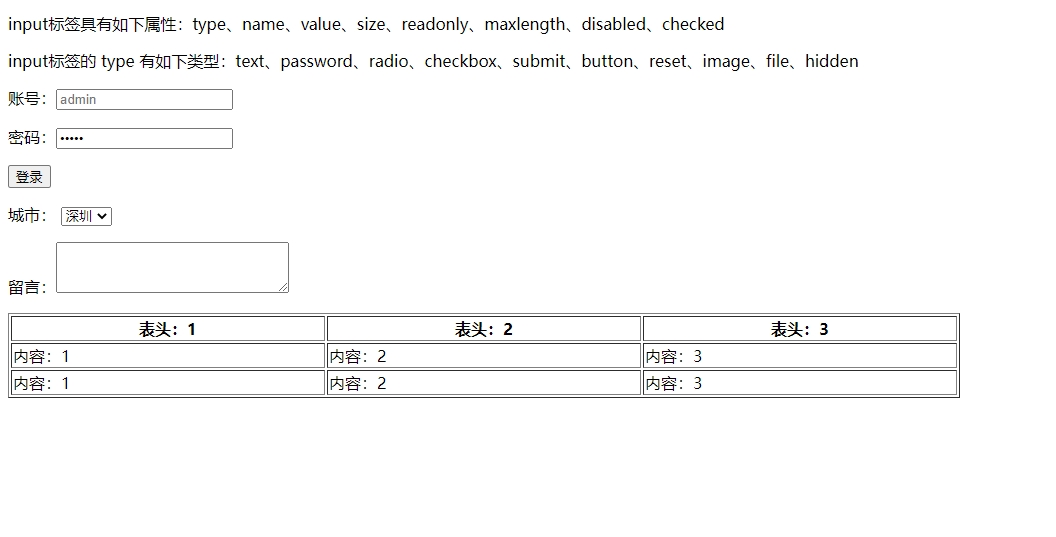id:跟人的身份证号一样,标签的唯一标识,不可重复name:跟人的名字一样,标签的名字,可以重复value:是text的文本值,显示在input里面的文字class:是样式的名字,设置标签样式的时候用type:input标签的类型